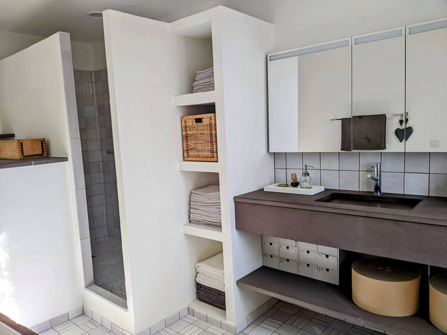 Au premier étage : une suite parentale avec une salle d’eau et WC, deux chambres dont une avec dressing et une salle d’eau/wc, un grenier.