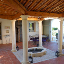 La propriété est implantée sur un beau terrain clos et arboré, avec notamment des oliviers et des arbres fruitiers. Une superbe piscine carrelée en mosaïque pâte de verre de 12×4 mètres, un puits et des terrasses agrémentent ce cadre enchanteur.