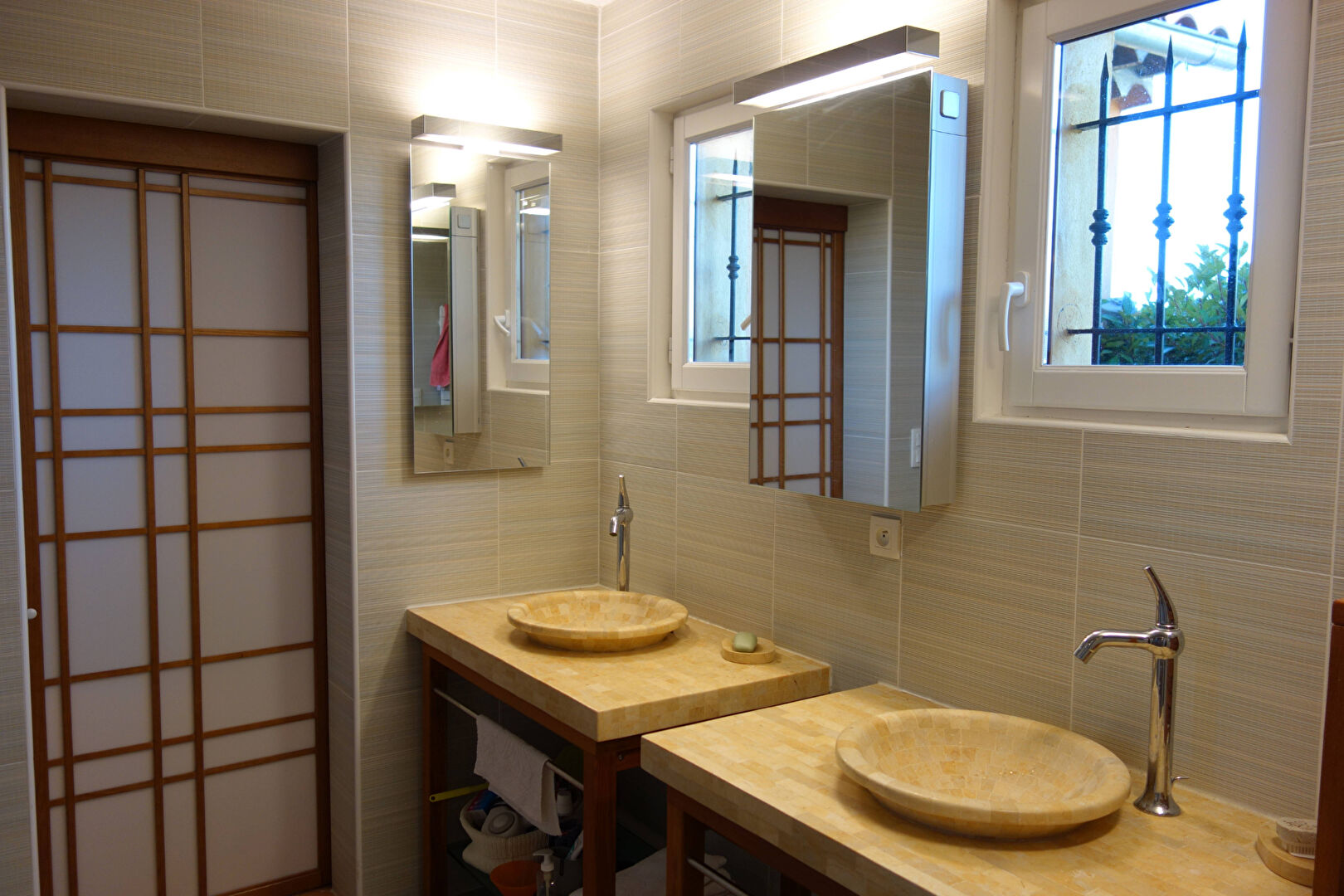 Un superbe patio offre un espace de vie convivial, séparant deux chambres supplémentaires et une salle d’eau avec WC. A l’étage, une mezzanine lumineuse vient compléter l’ensemble.