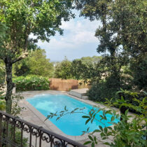 Un terrain de 1917m² sans vis à vis entièrement clôturé et arboré d’essences méditerranéennes avec des restanques en pierres. Une piscine au sel de 11m x 4.5m, 2 dépendances, 1 abri de voiture. Tout à l’égout.