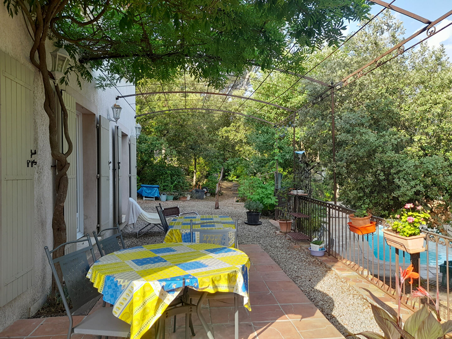 Un terrain de 1917m² sans vis à vis entièrement clôturé et arboré d’essences méditerranéennes avec des restanques en pierres. Une piscine au sel de 11m x 4.5m, 2 dépendances, 1 abri de voiture. Tout à l’égout.