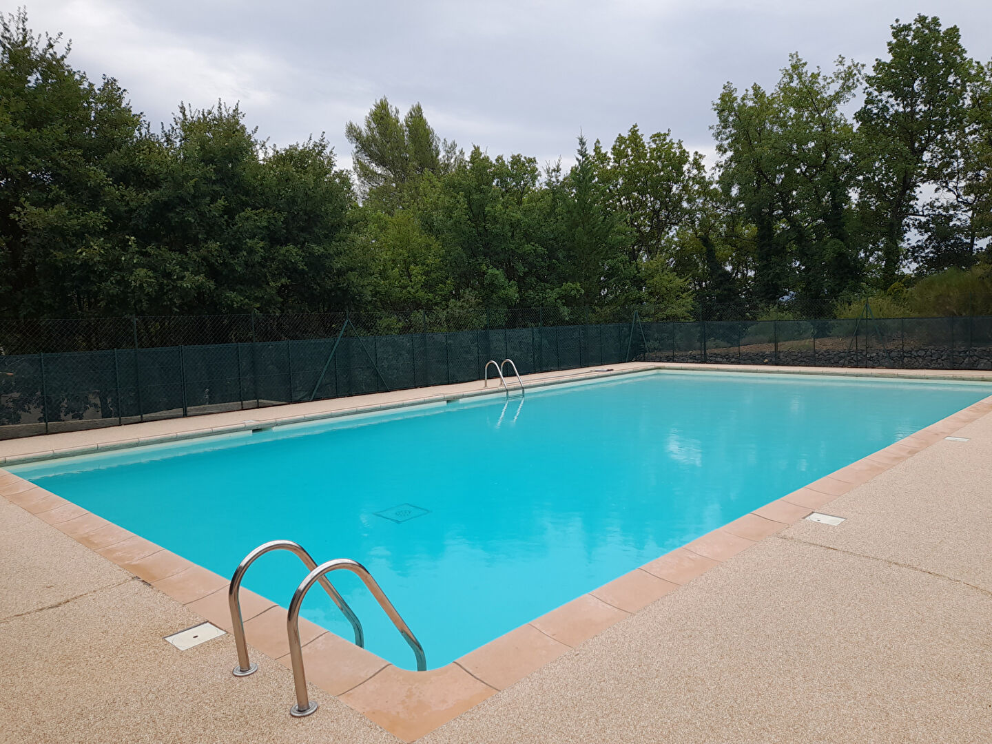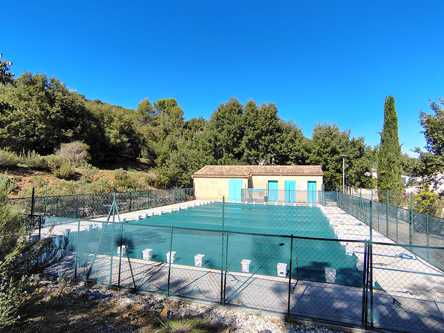 Accès à la grande piscine réservée aux co-lotis située à moins de 50 mètres de la maison avec cabines de douche , toilettes et vestiaires.