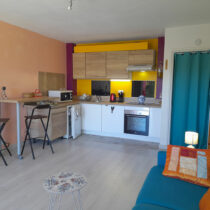 Ce grand studio comprend une pièce de vie baignée de lumière avec une cuisine américaine équipée, une salle d’eau confortable et un dégagement avec placard et possibilité de rangements.