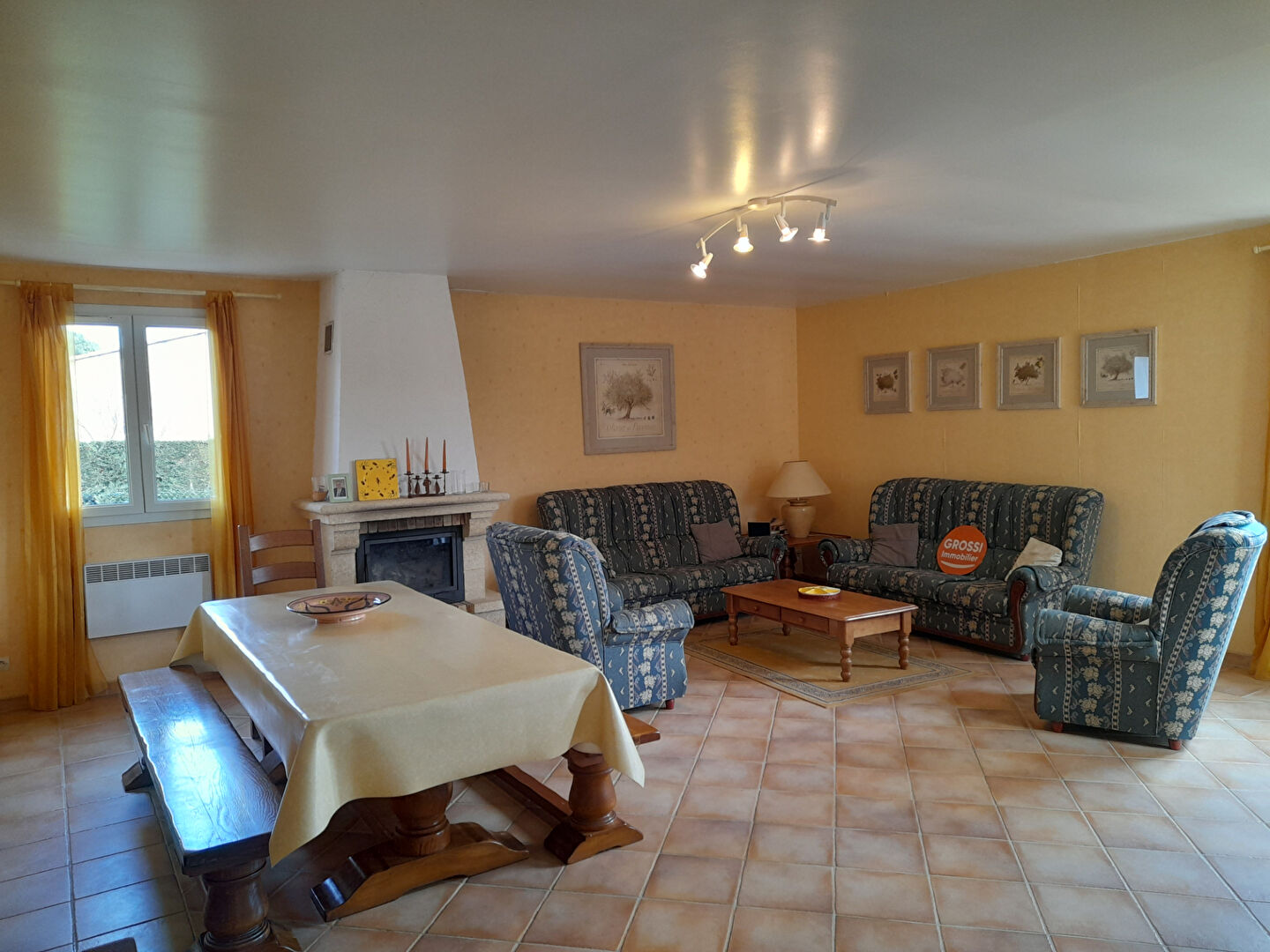– Double salon salle à manger de 45m2 : pièce de vie lumineuse et spacieuse avec cheminée à insert et porte-fenêtre ouvrant sur la terrasse couverte.