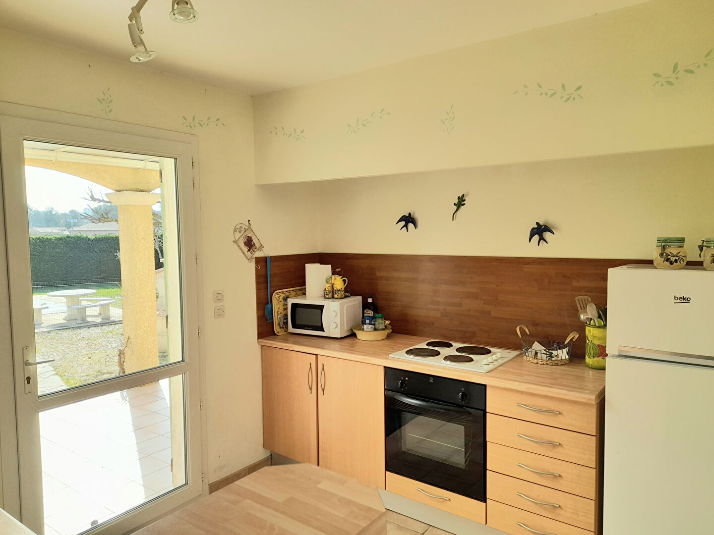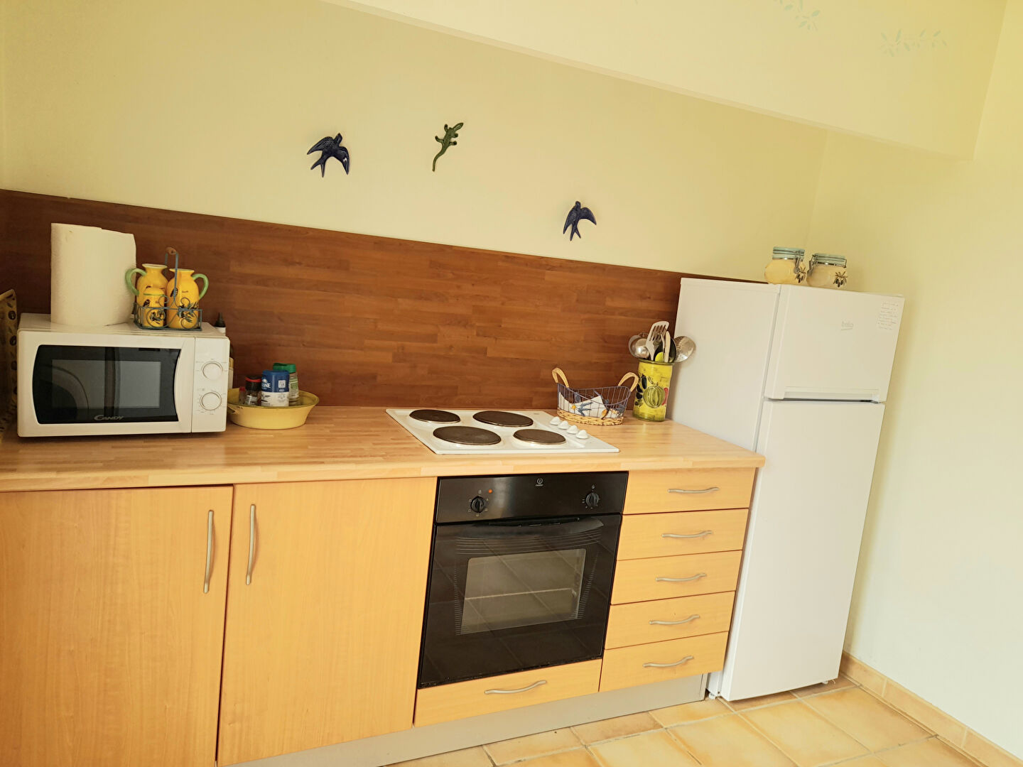 – Cuisine américaine avec accès sur la grande terrasse couverte face à la piscine.