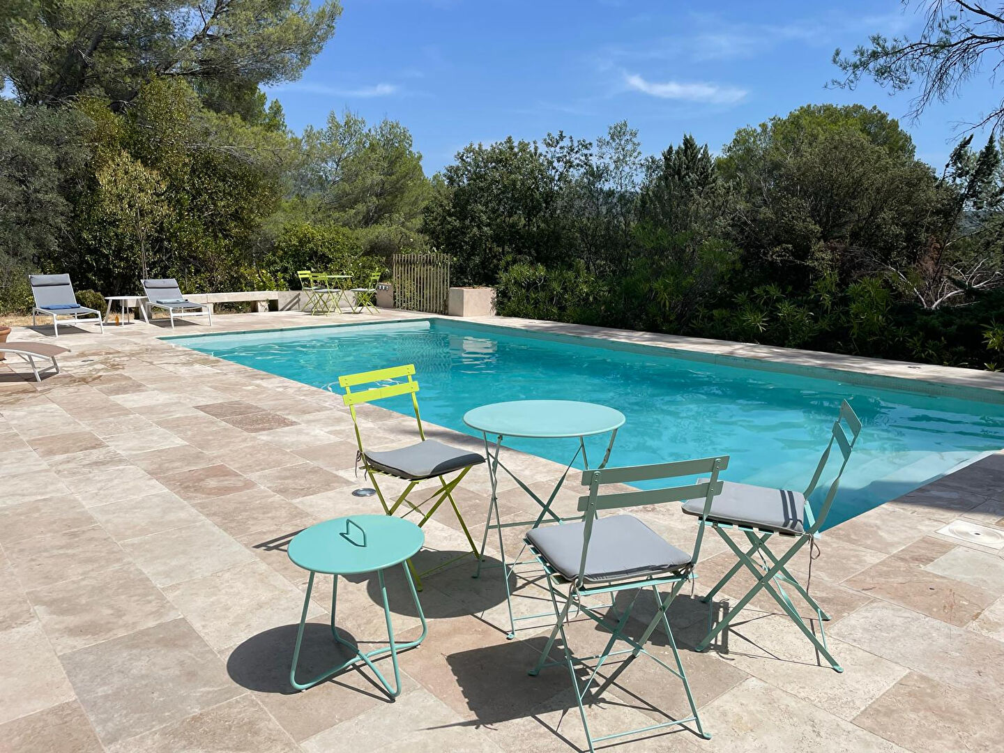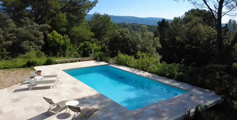 Joli terrain arboré de 4.042 m², un bel espace piscine 10 m X 5 m et grande plage en travertin, terrasse couverte. Maison avec beaucoup de de charme et de cachet.
