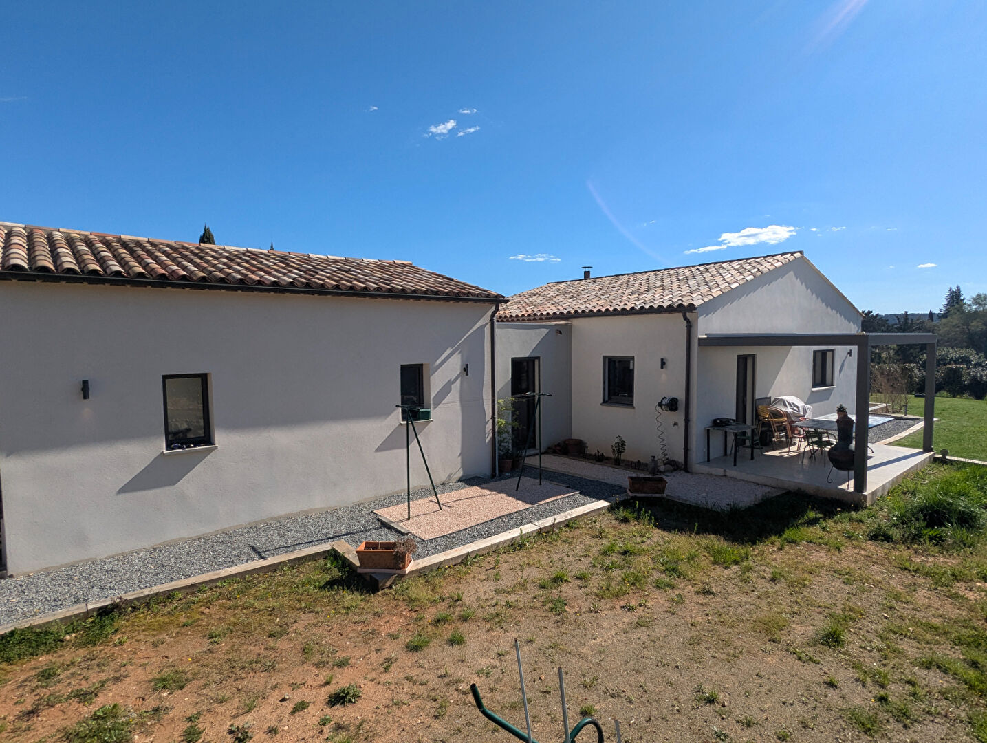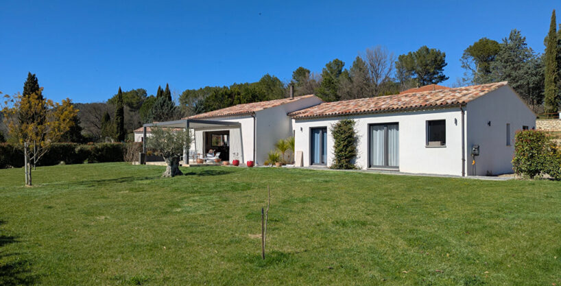 SALERNES, superbe maison très lumineuse de plain pied de 2020, 182 m², 3 chambres, offrant de très belles prestations, double garage sur 3.697 m² de terrain.