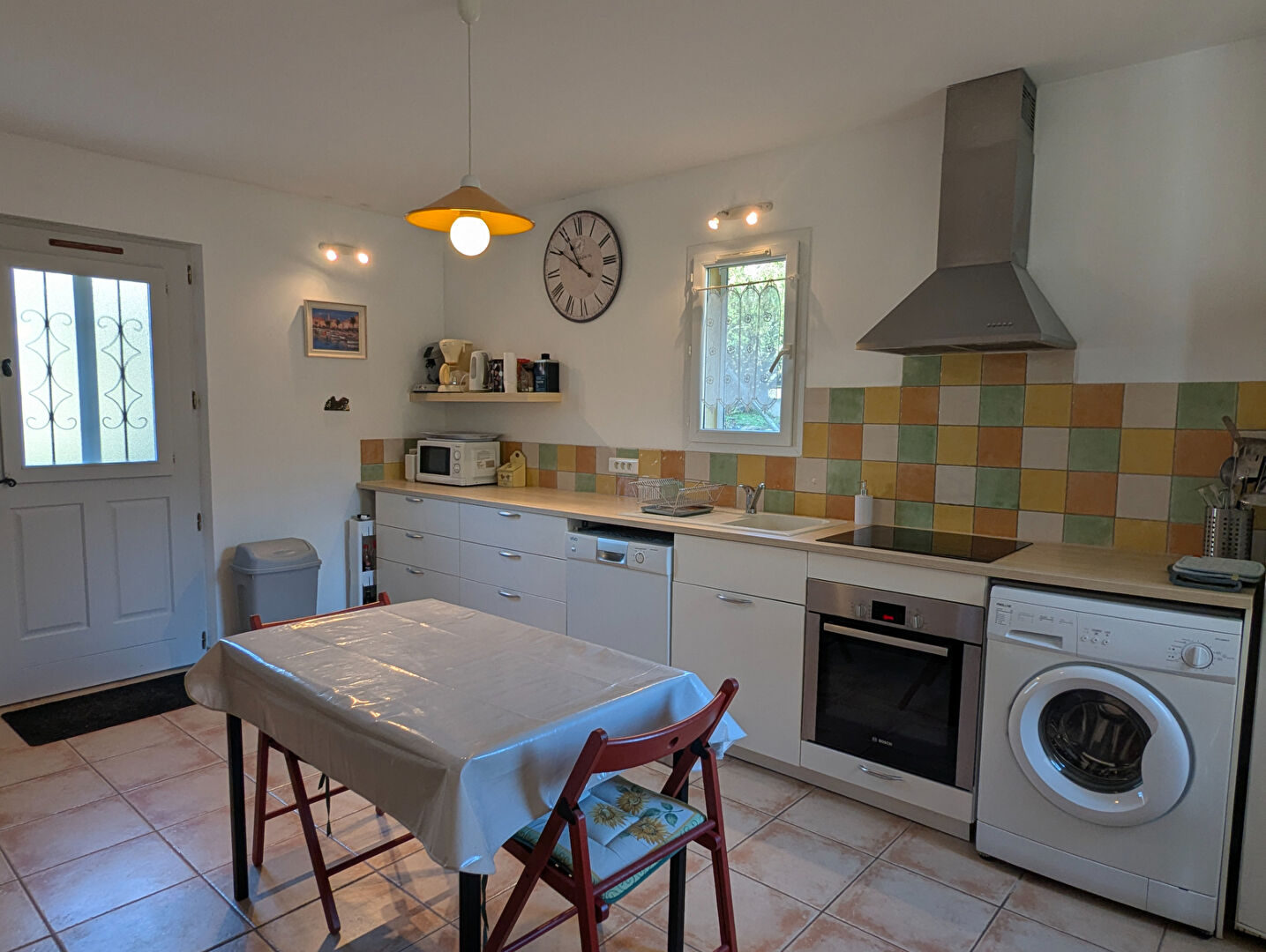 Rdc : cuisine/salle à manger donnant sur une jolie terrasse avec pergola, salon, WC/buanderie.