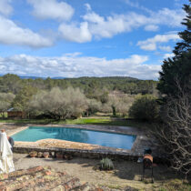 Sur un très joli terrain classé en zone agricole de 5,5 hectares planté d’oliviers et d’essences méditerranéennes, bel espace piscine traditionnelle 12 m X 4,5 m, un sauna et un garage de 47 m². Eau par forage.