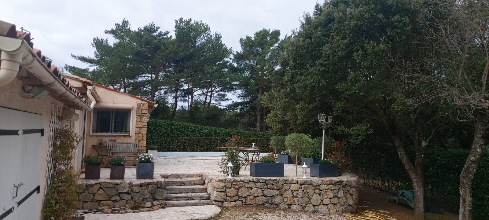 Sur 1110 m2 de terrain arboré, piscine.