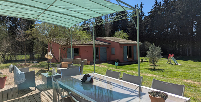 Un bel espace de vie de 50 m² donnant sur sur terrasse pergola avec cuisine semi-ouverte